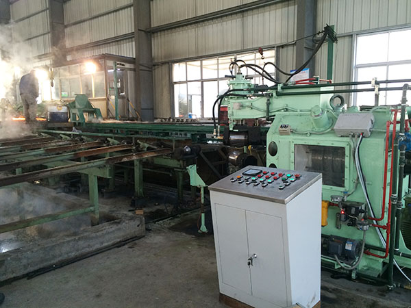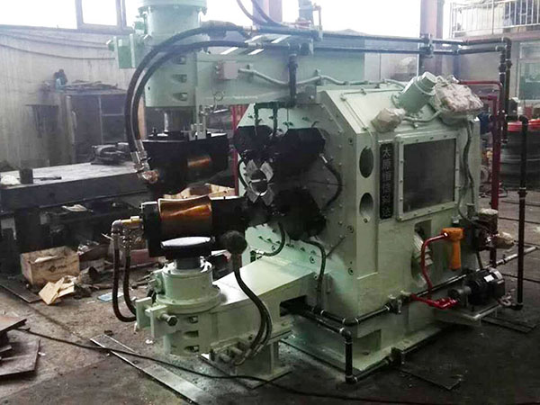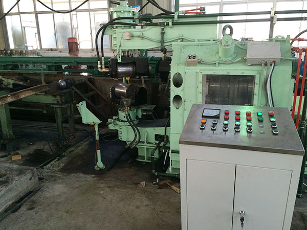 打頭能力:  設備******捶打能力為100T(980KN)。可在鋼管熱和冷兩種狀態(tài)下進行打頭,熱打是指將鋼管加熱到650℃~800℃左右的狀態(tài)下進行打頭,或利用穿孔完成后鋼管余熱進行在線打頭。冷打指在鋼管壁厚4mm以下進行常溫下打頭。打頭尺寸根據(jù)更換模具來調整,每副模具打出的頭子尺寸為固定尺寸。捶打能力可根據(jù)公式進行計算得出,熱打前的鋼管直徑為φ40—φ114mm。