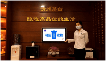 在公司茅臺(tái)專賣店內(nèi)布置垃圾分類設(shè)施,做到專類專桶。